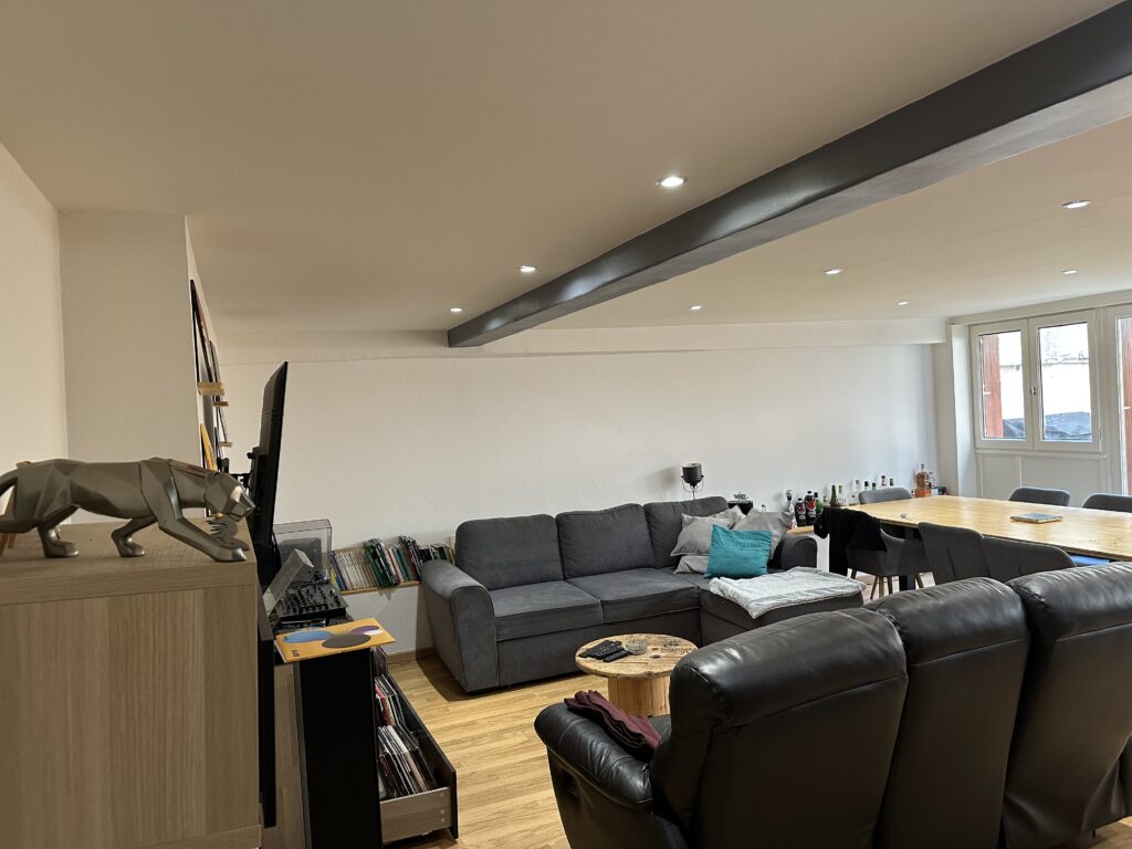 Il se compose d’une grande pièce de vie lumineuse avec cuisine ouverte de 47,56 m², parfaite pour recevoir et profiter d’un espace convivial.