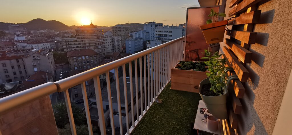 Deux balcons en longueur, offrant d’un côté une vue dégagée sur la colline de Villeboeuf et de l’autre une magnifique ouverture sur l’hypercentre et les collines de Saint-Étienne.