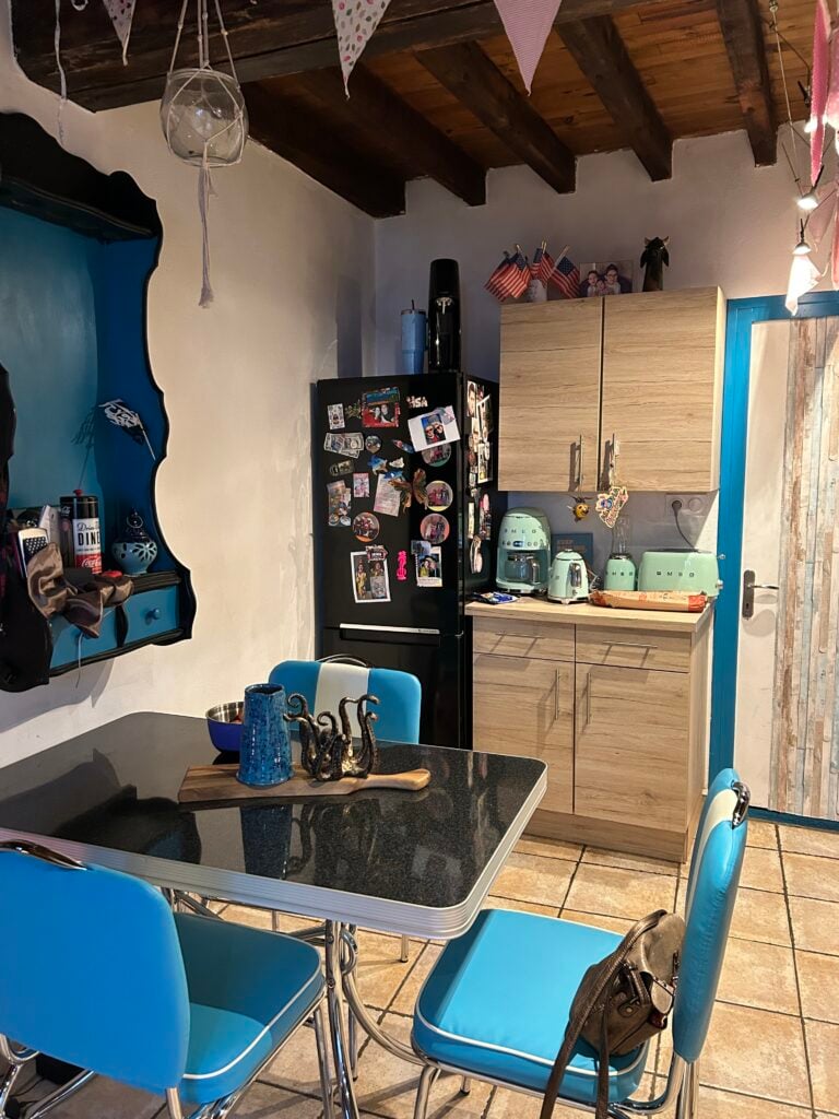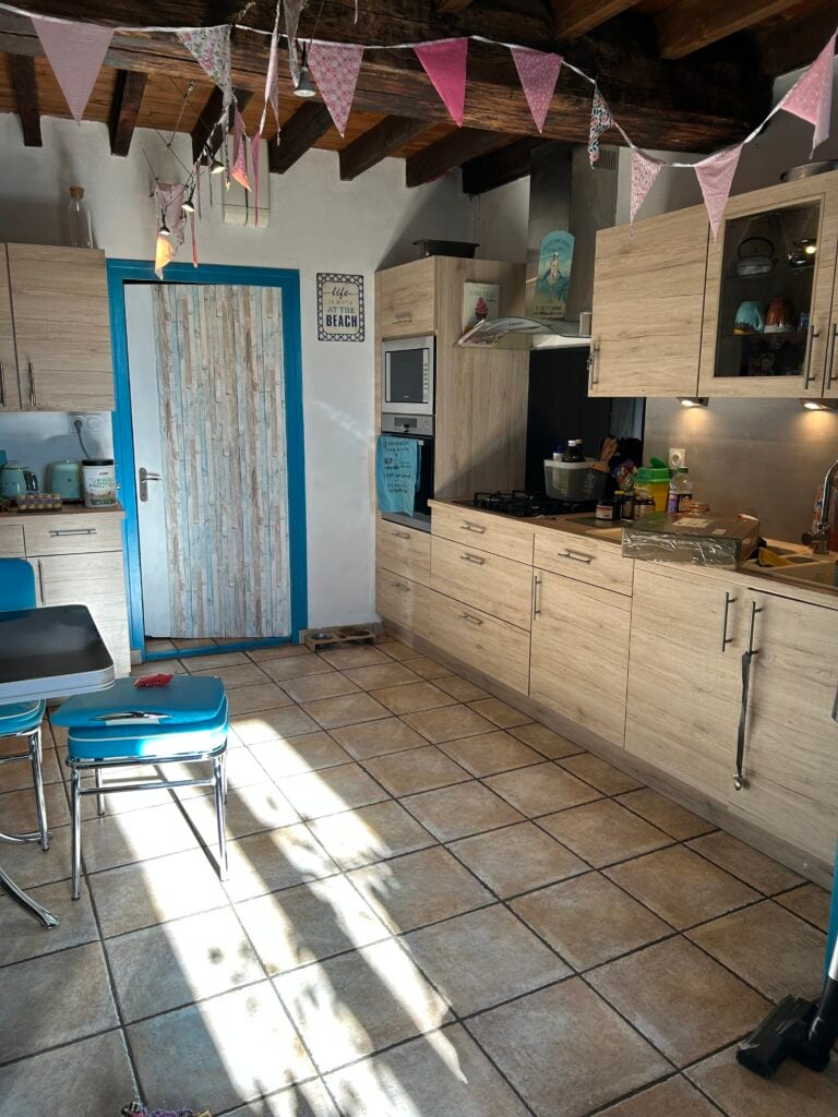 Entièrement rénovée en 2022, la maison se développe sur trois niveaux et bénéficie de prestations de qualité alliant charme de l’ancien et confort moderne : poutres reprises, double vitrage bois, poêle à bois, et chaudière thermo-électrique.
